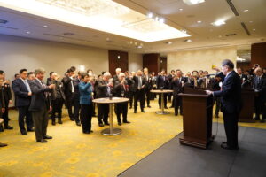 日本医療機器工業会(理事長=東竜一郎氏、日医工)は、1月8日㈭午後5時から、東京・丸の内のパレスホテル東京で「特別講演会」を開いたあと「2026年新春賀詞交歓会」を開催した。賀詞交歓会には会員企業をはじめ、来賓の国会議員や厚生労働省、経済産業省の担当官らも顔をみせ、にぎやかに新年の初顔合わせを行った。