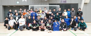 フットサル大会の参加者らで記念撮影